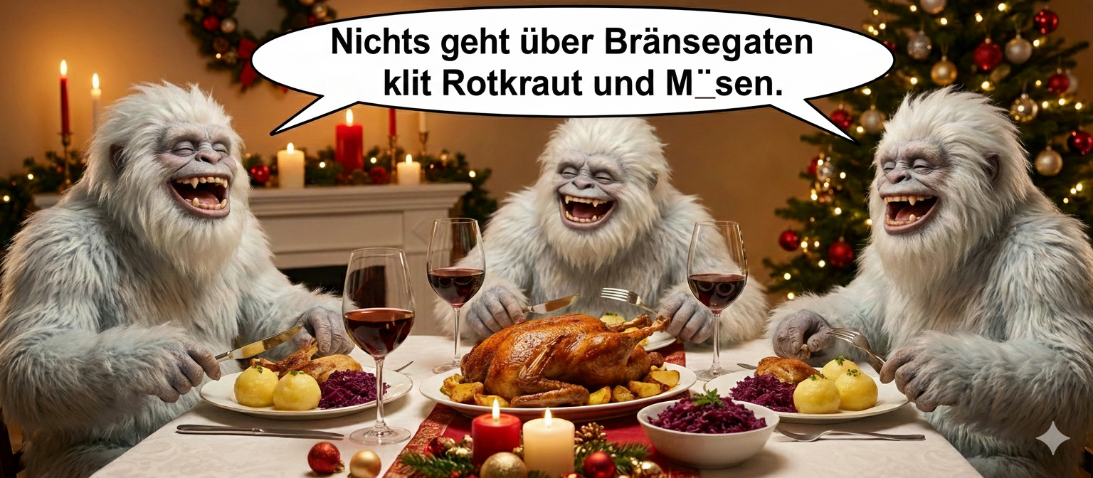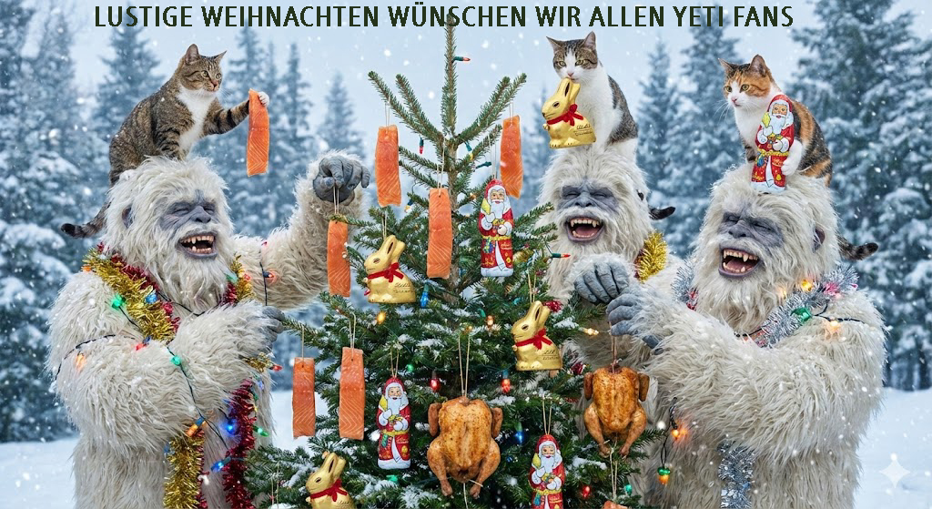 3 Yetis feiern